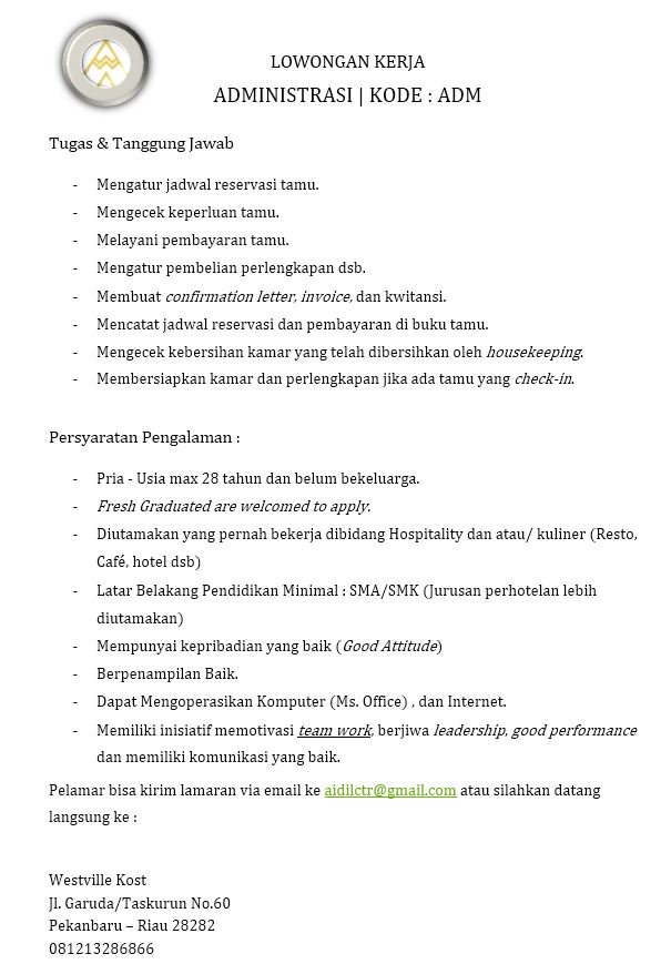 Lowongan Kerja Halona Residence Informasi Lowongan Kerja