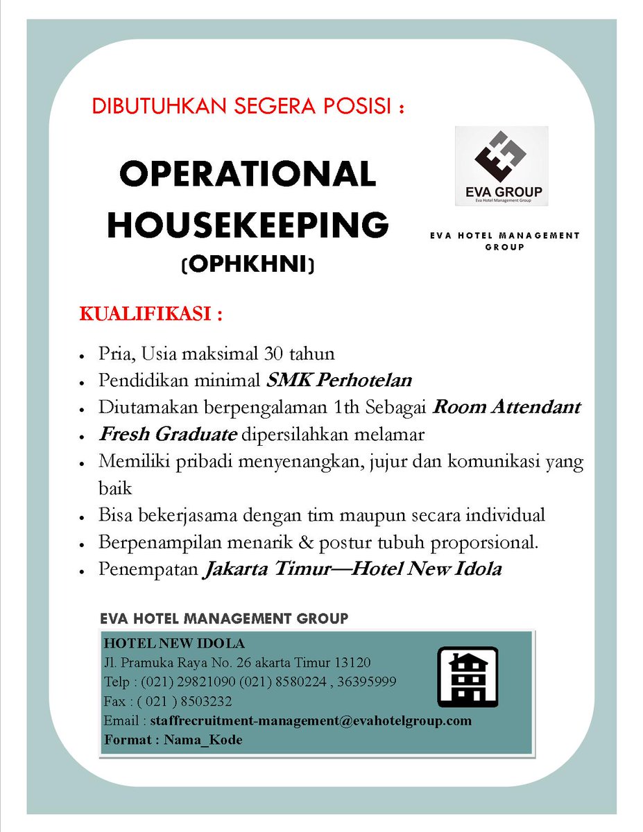 Lowongan Operational Housekeeping Di Eva Group 16 Jul 2019