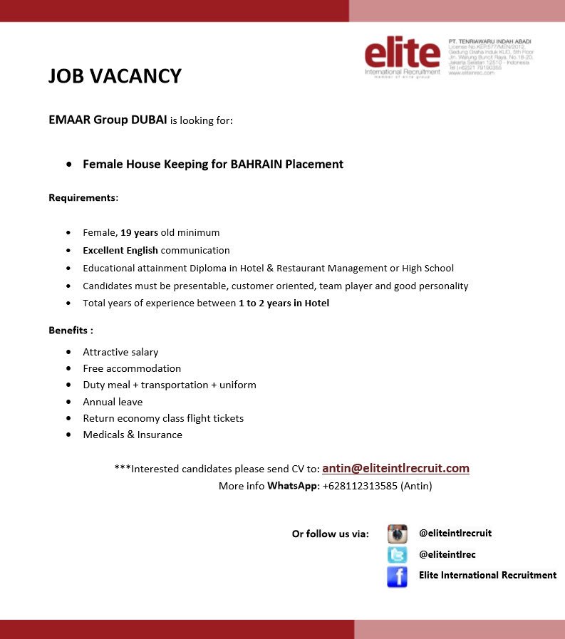 Lowongan Kerja Housekeeping Info Lowongan Bali Facebook