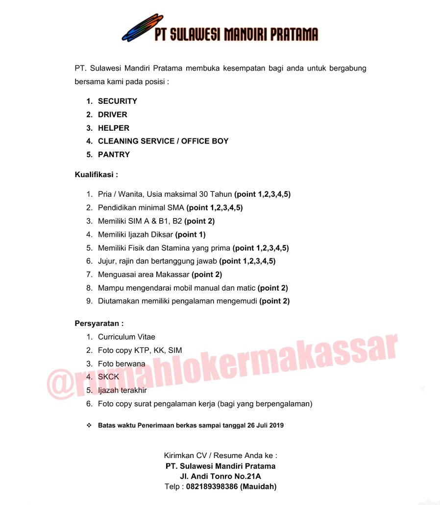 Lowongan Kerja Loker Lulusan Sma Smk Makassar Juli 2019