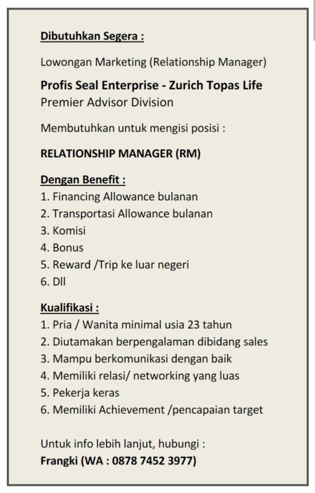 Lowongan Kerja Relationship Manager Info Lowongan Kerja